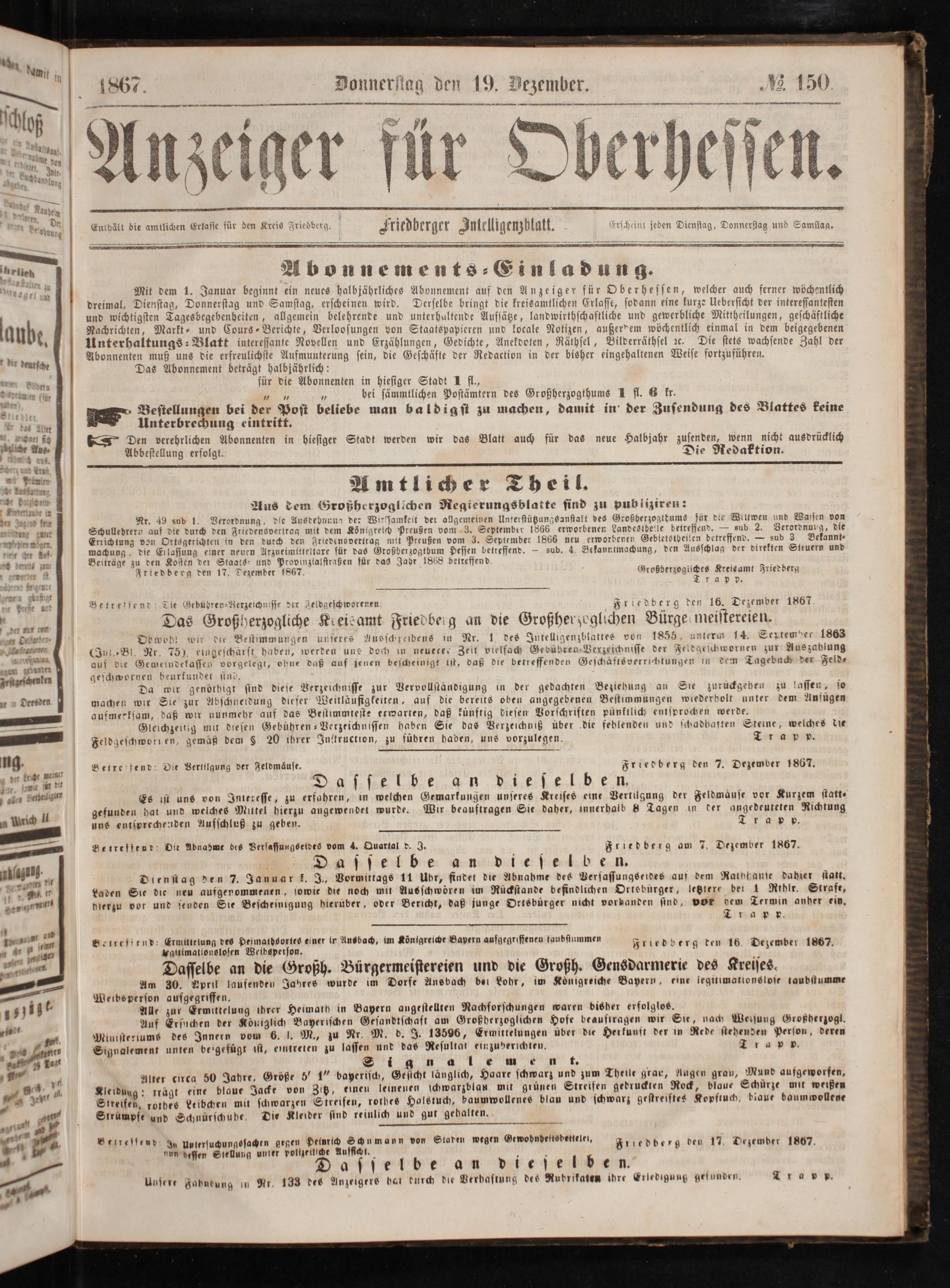 Anzeiger für Oberhessen. 1866-1868