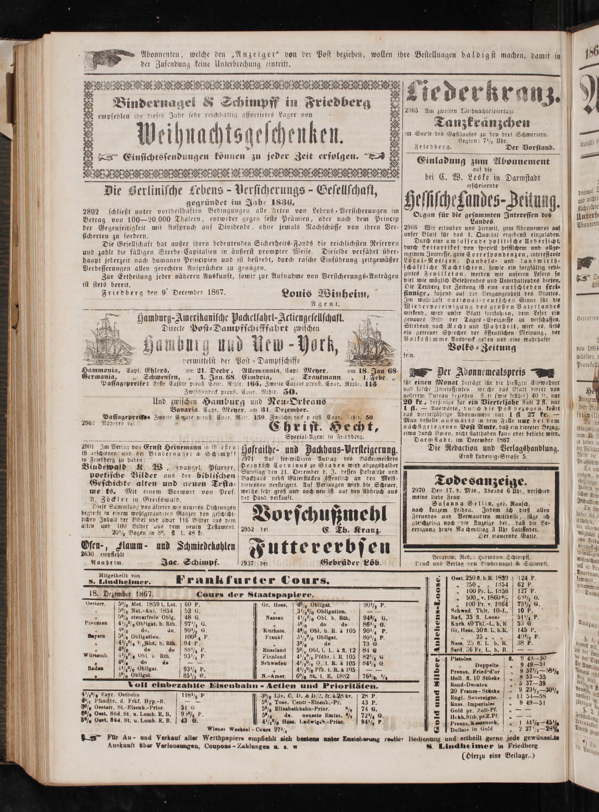 Anzeiger für Oberhessen. 1866-1868