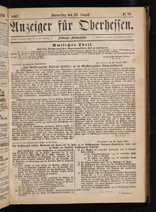 Anzeiger für Oberhessen. 1866-1868