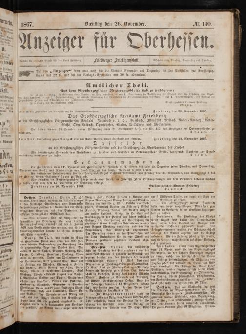 Anzeiger für Oberhessen. 1866-1868