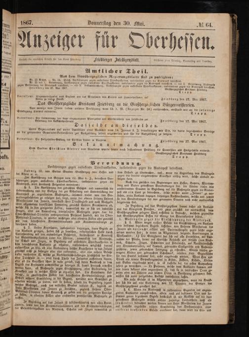 Anzeiger für Oberhessen. 1866-1868