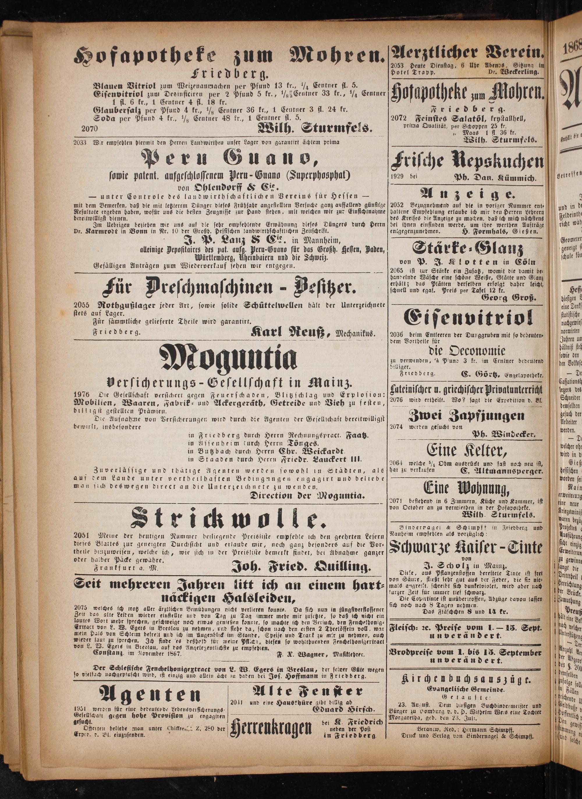 Anzeiger für Oberhessen. 1866-1868