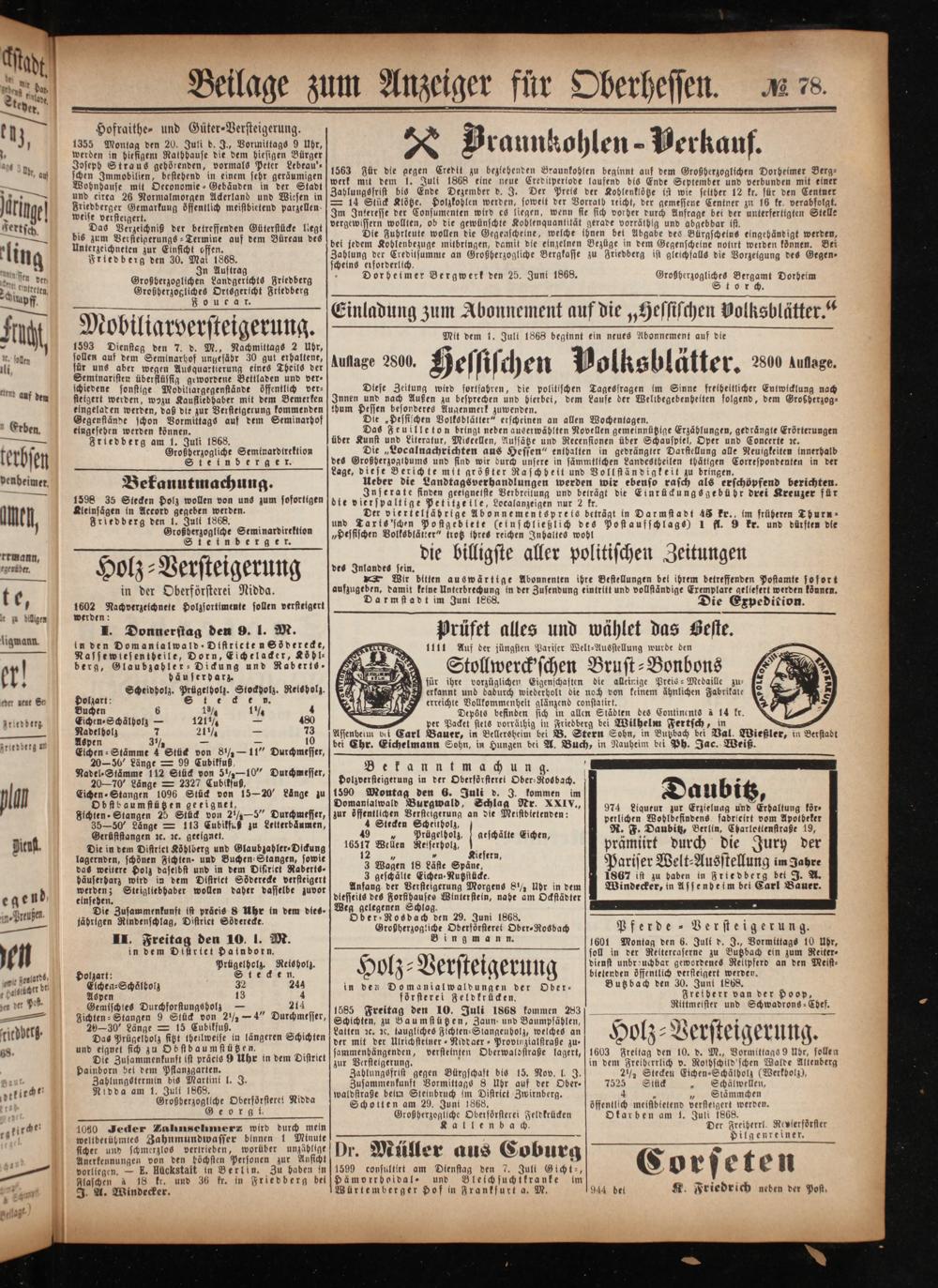Anzeiger für Oberhessen. 1866-1868