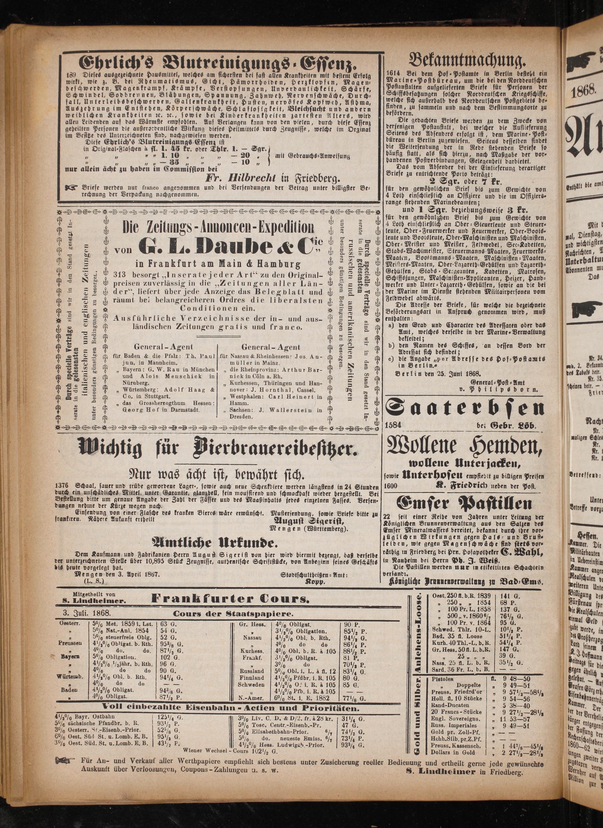 Anzeiger für Oberhessen. 1866-1868