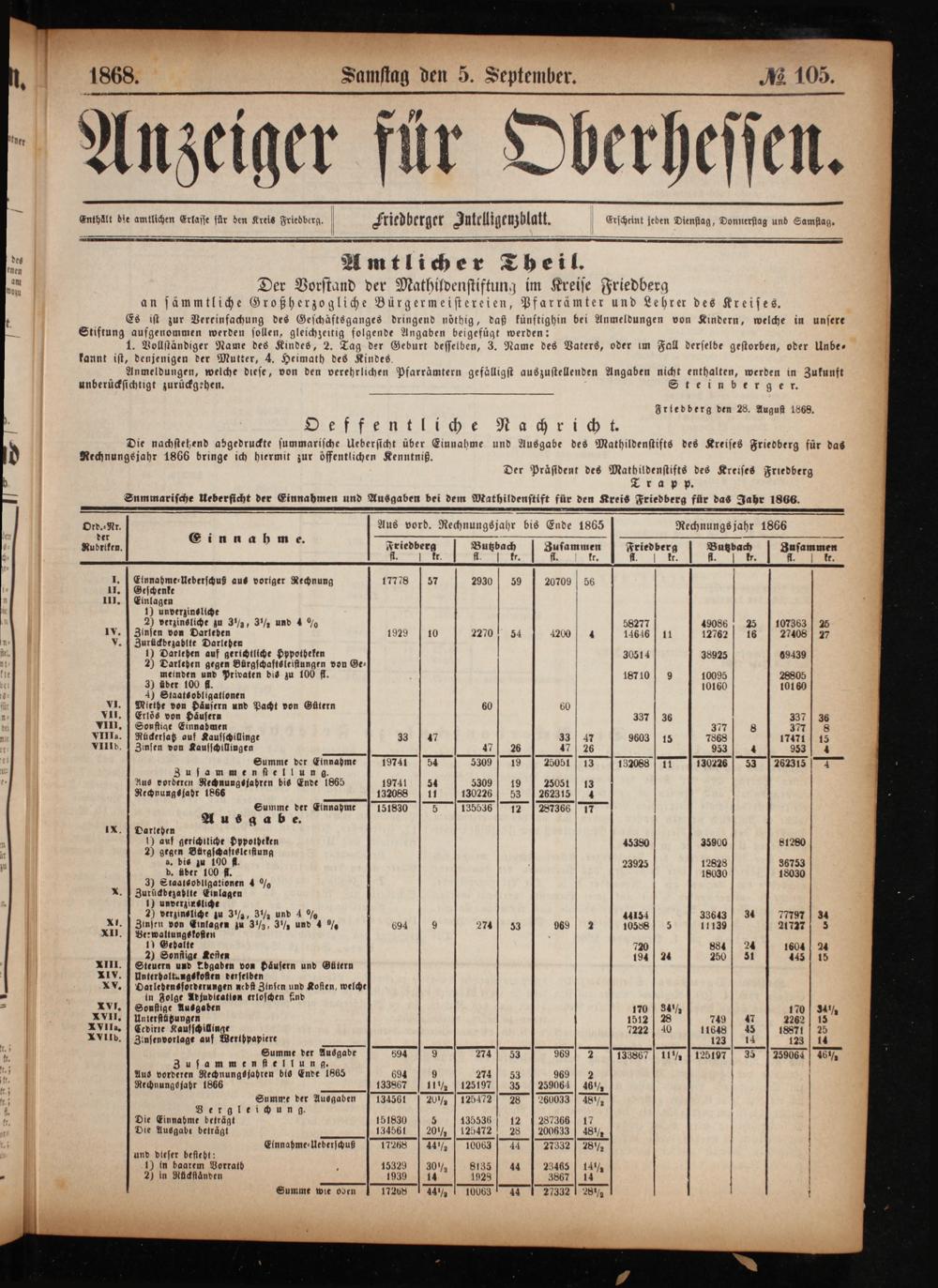 Anzeiger für Oberhessen. 1866-1868