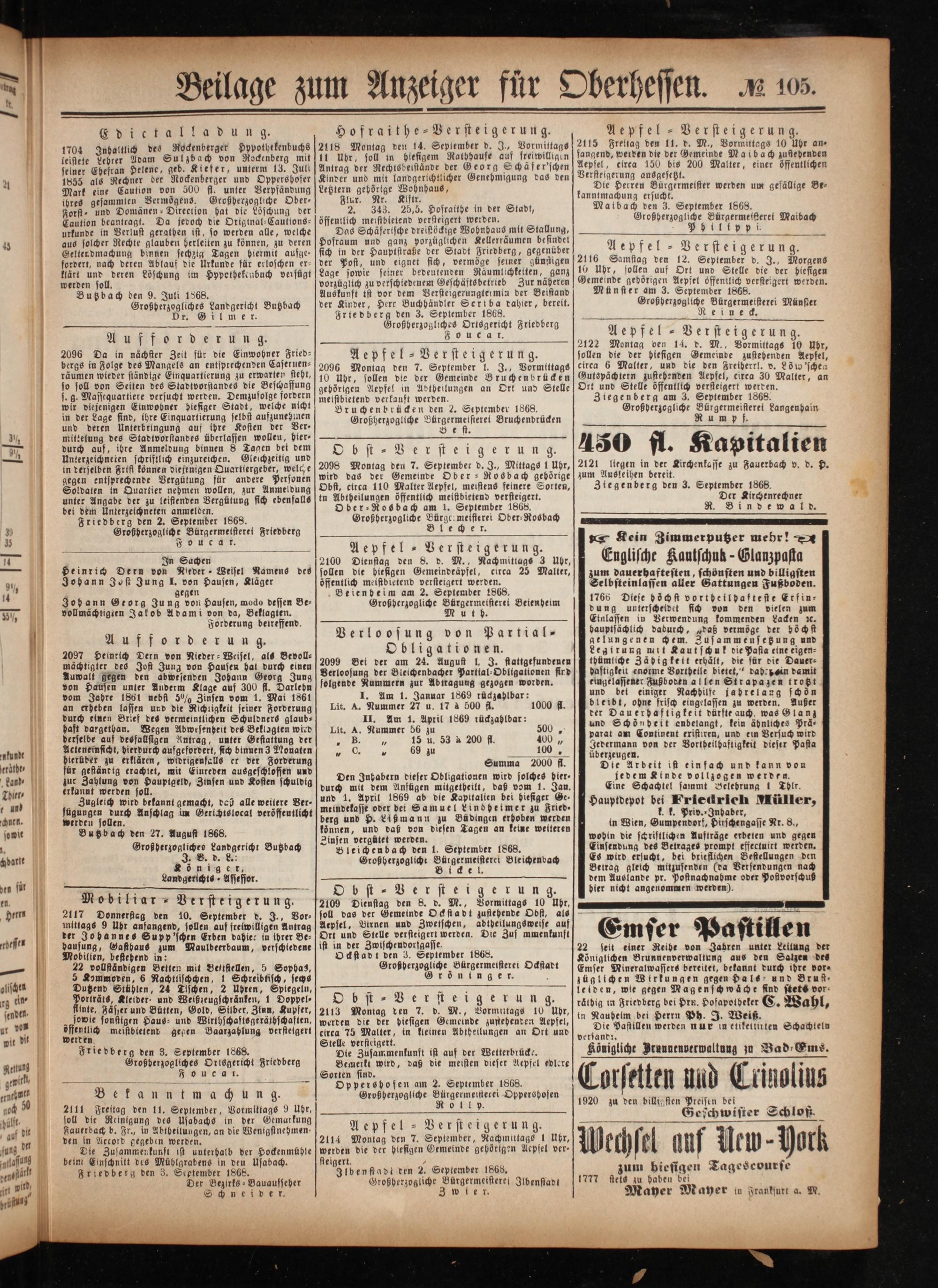 Anzeiger für Oberhessen. 1866-1868