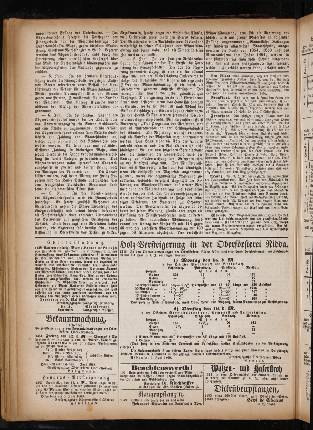 Anzeiger für Oberhessen. 1866-1868
