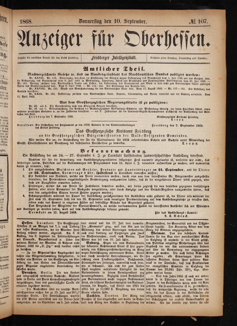 Anzeiger für Oberhessen. 1866-1868