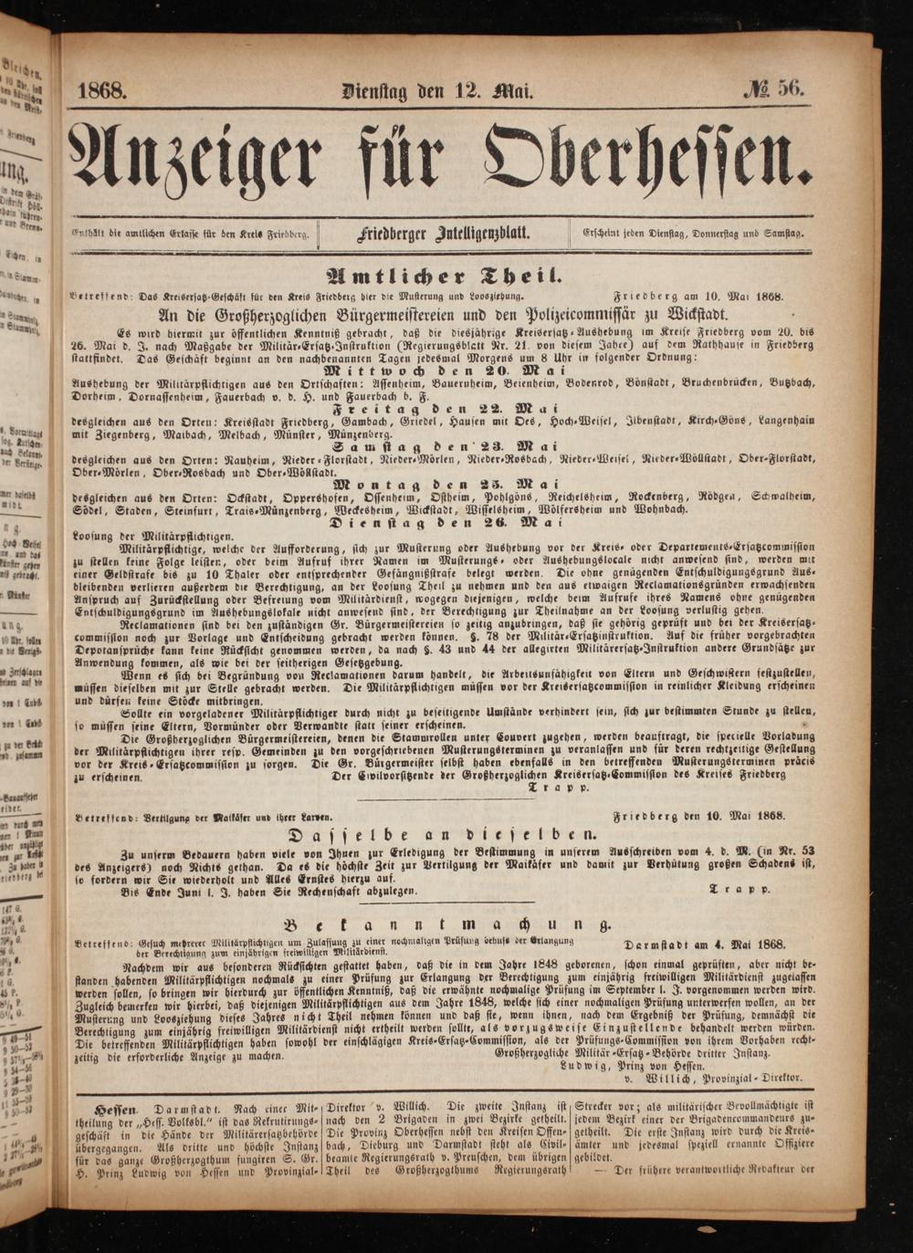 Anzeiger für Oberhessen. 1866-1868