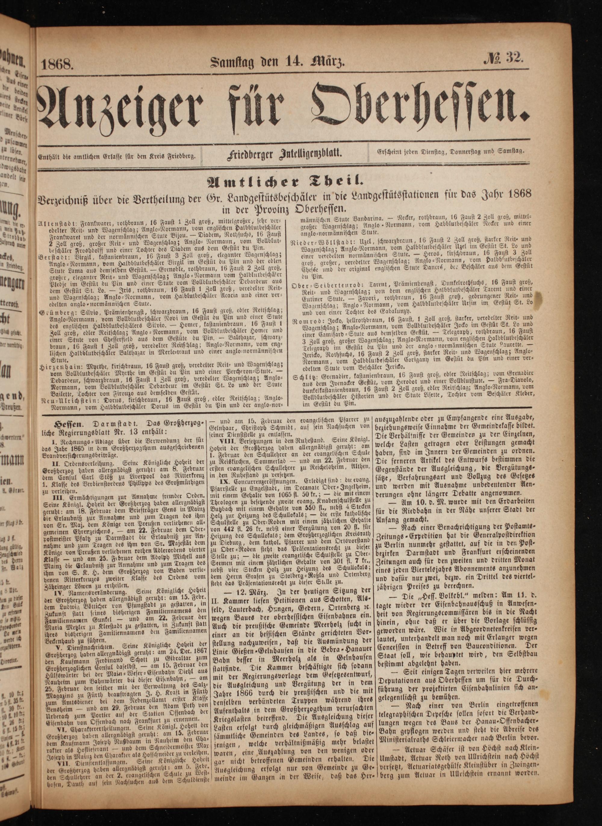 Anzeiger für Oberhessen. 1866-1868