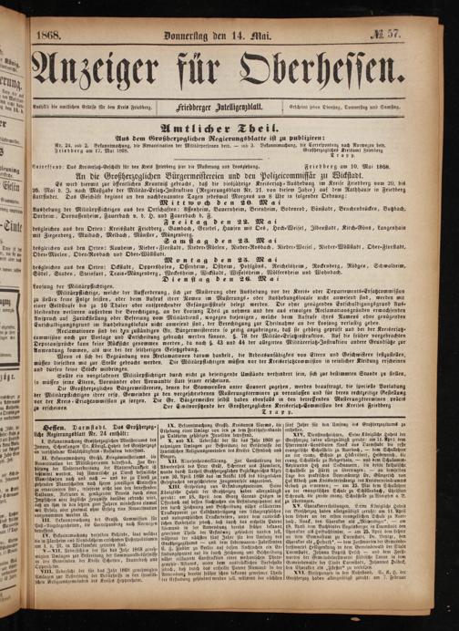 Anzeiger für Oberhessen. 1866-1868