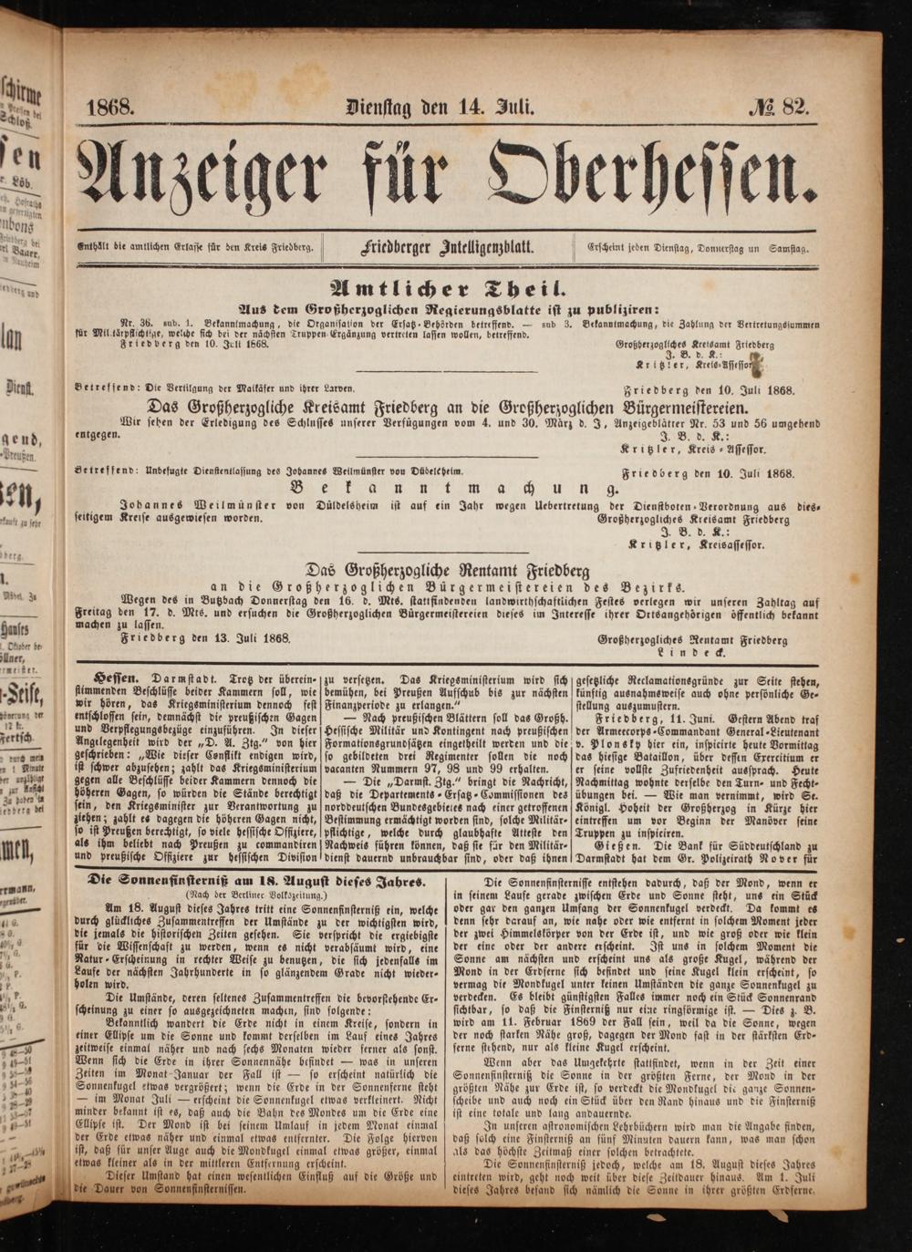 Anzeiger für Oberhessen. 1866-1868