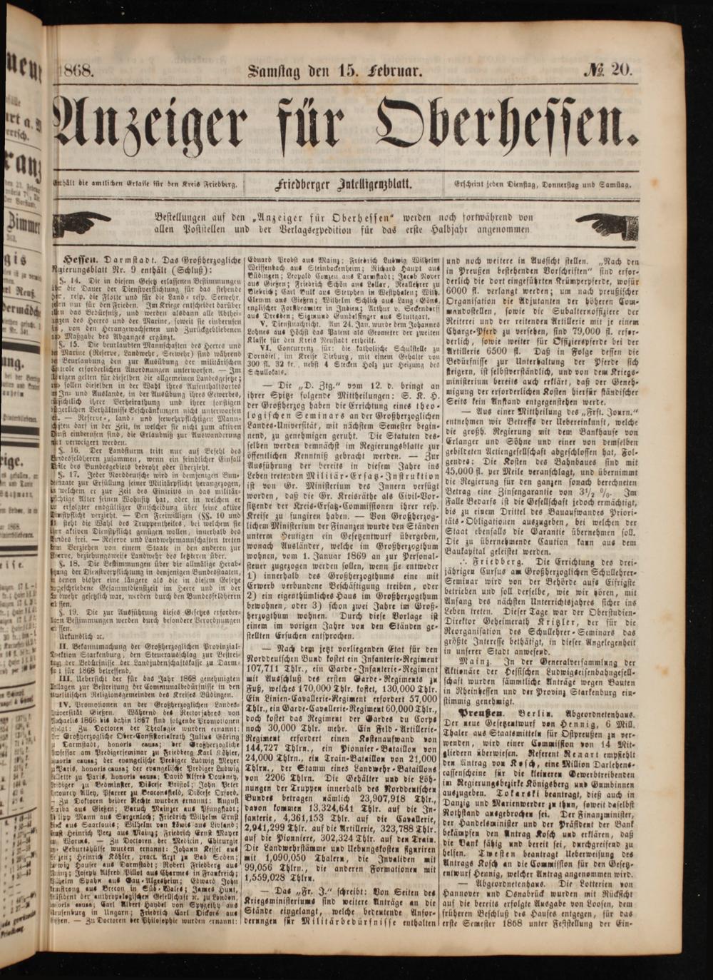 Anzeiger für Oberhessen. 1866-1868