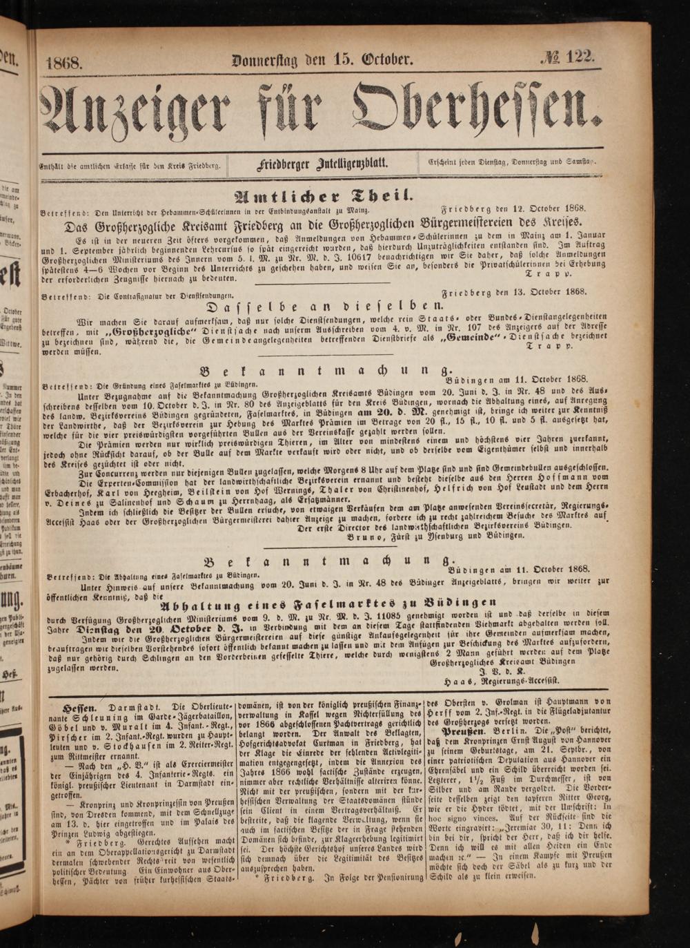 Anzeiger für Oberhessen. 1866-1868