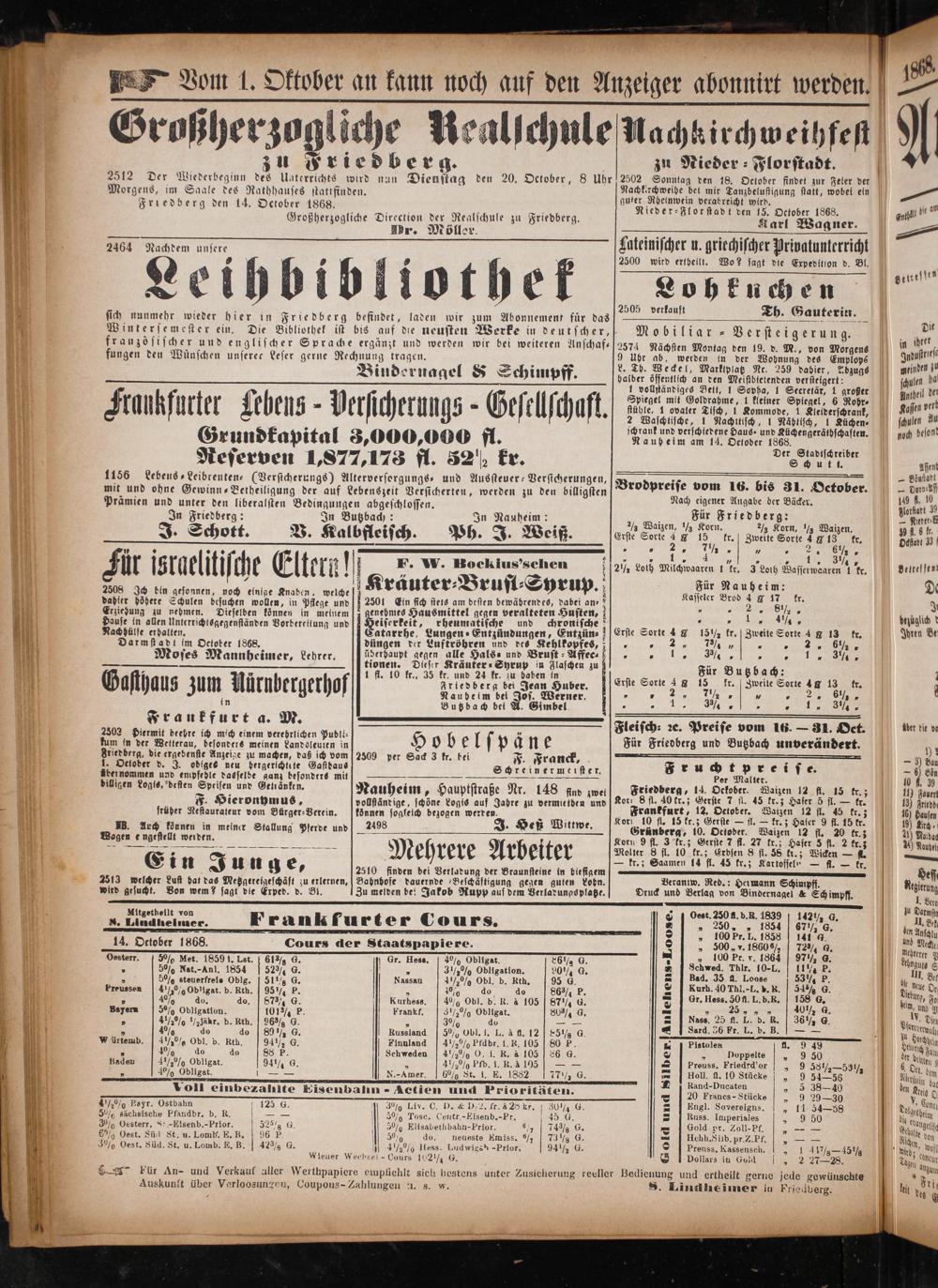 Anzeiger für Oberhessen. 1866-1868