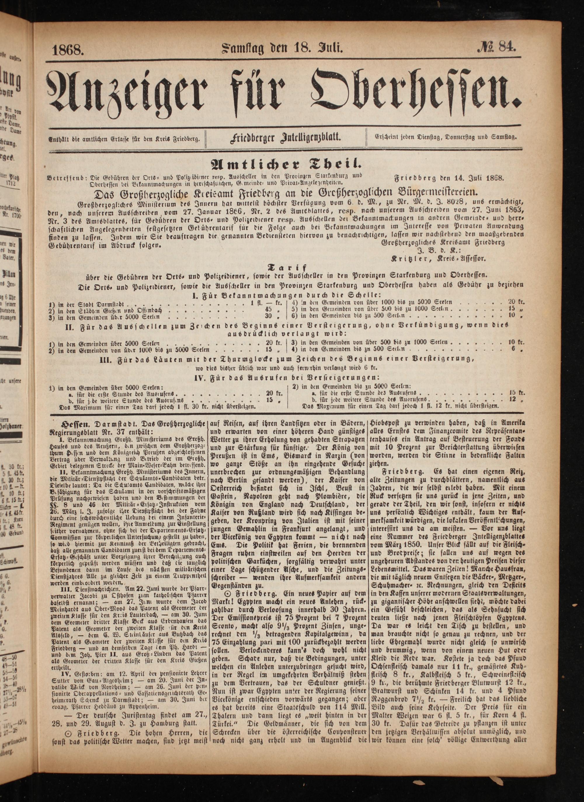 Anzeiger für Oberhessen. 1866-1868