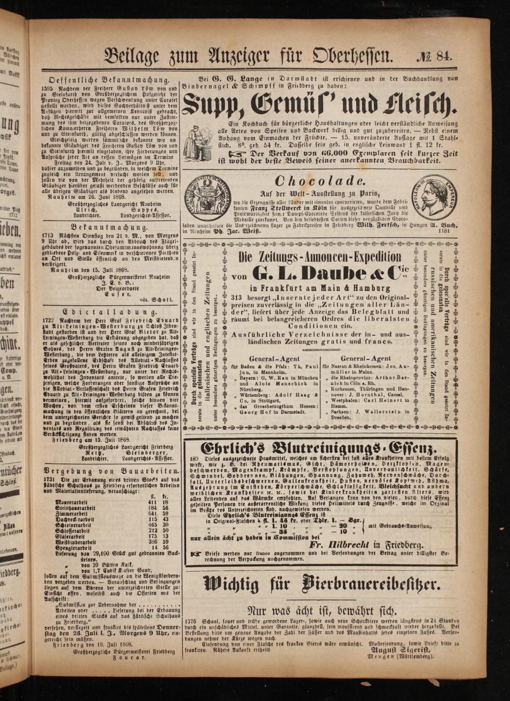 Anzeiger für Oberhessen. 1866-1868