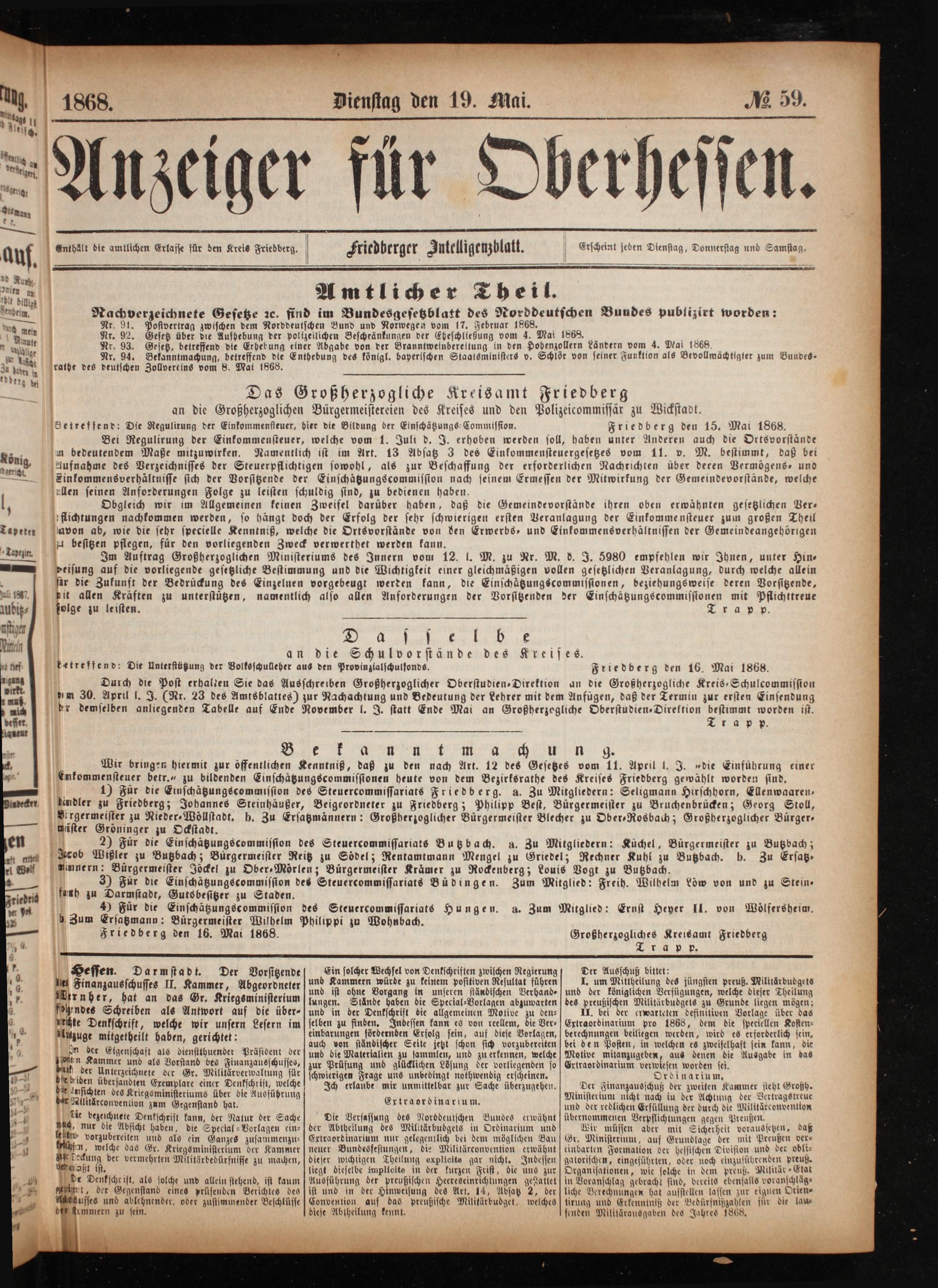Anzeiger für Oberhessen. 1866-1868