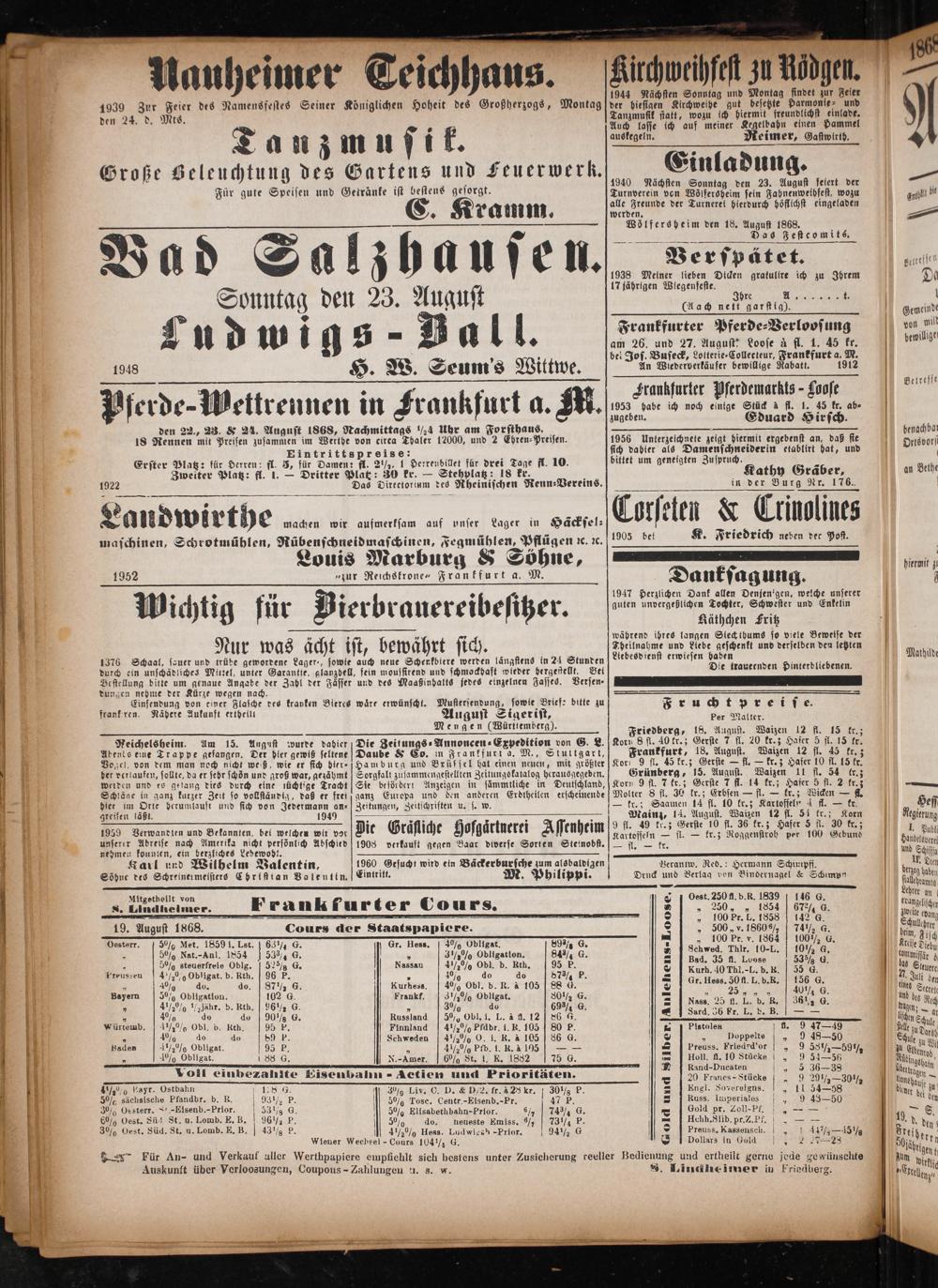 Anzeiger für Oberhessen. 1866-1868