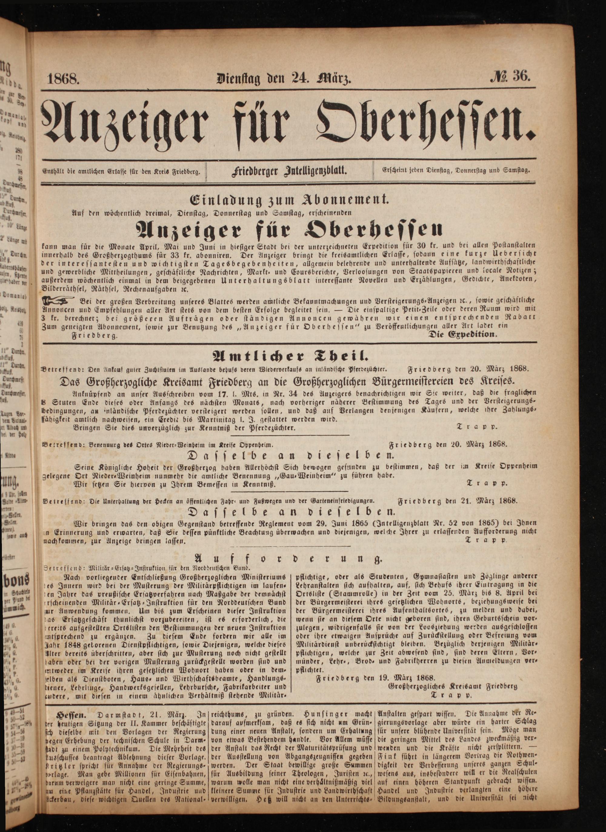 Anzeiger für Oberhessen. 1866-1868
