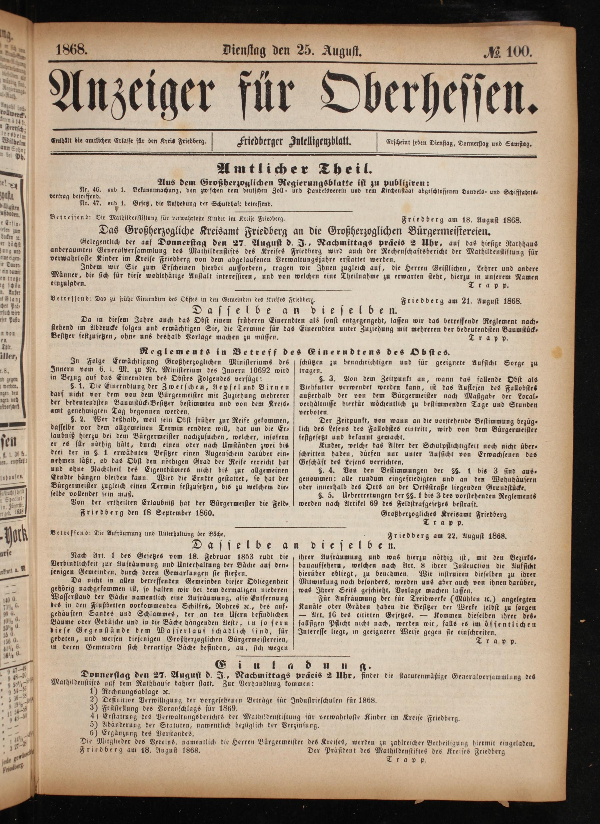 Anzeiger für Oberhessen. 1866-1868
