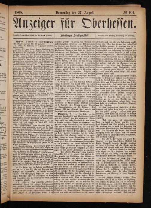 Anzeiger für Oberhessen. 1866-1868