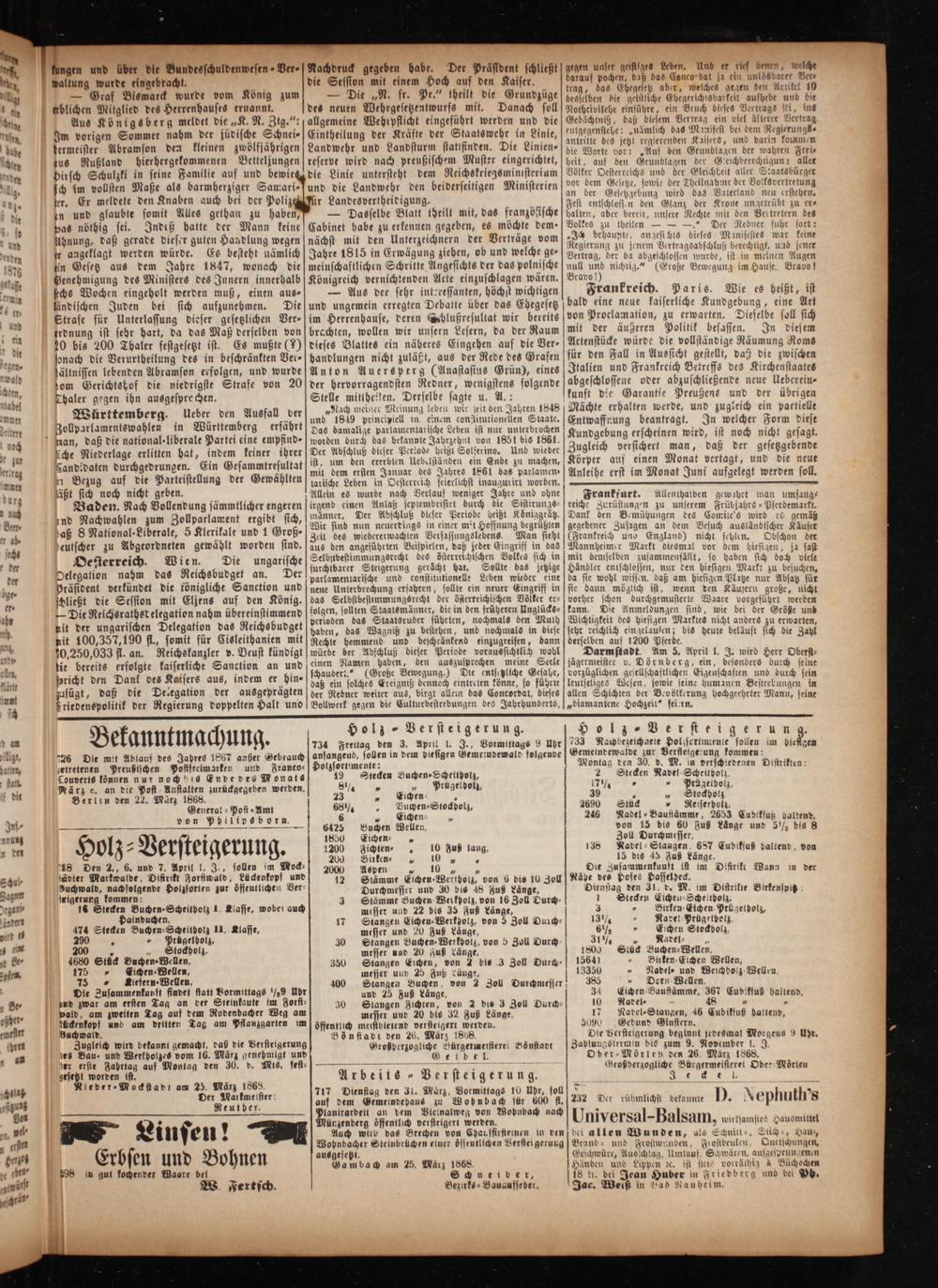 Anzeiger für Oberhessen. 1866-1868