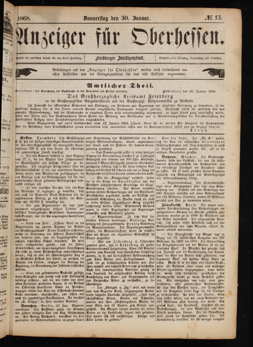 Anzeiger für Oberhessen. 1866-1868