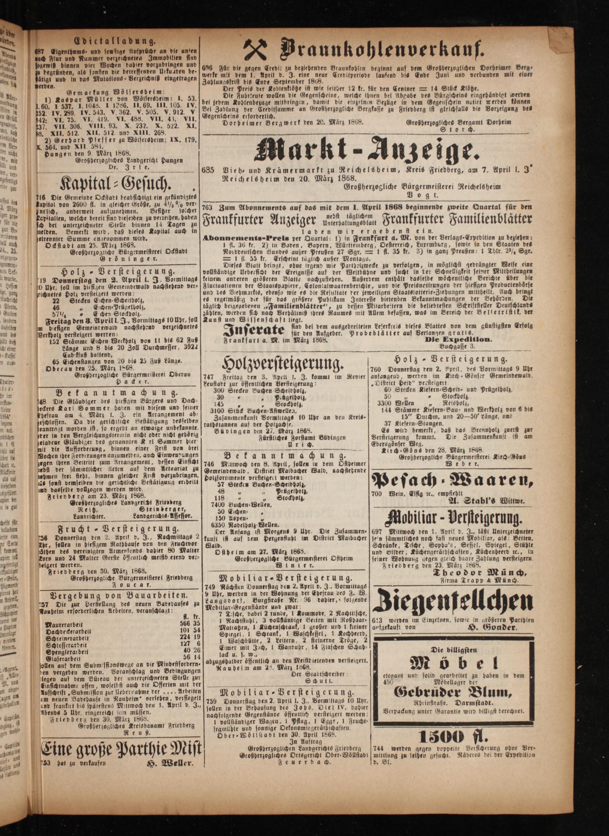 Anzeiger für Oberhessen. 1866-1868