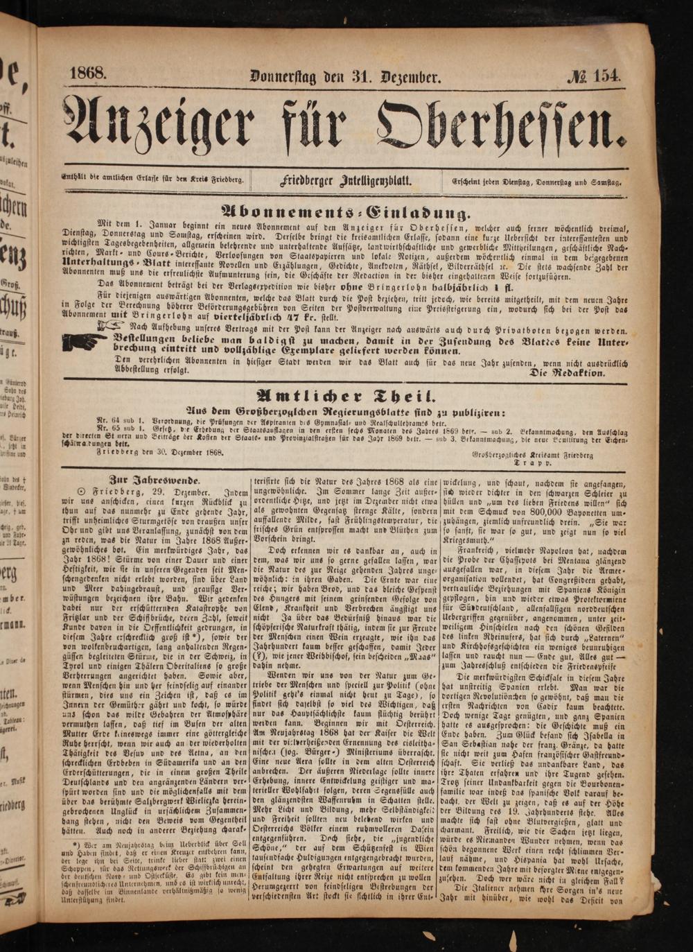 Anzeiger für Oberhessen. 1866-1868