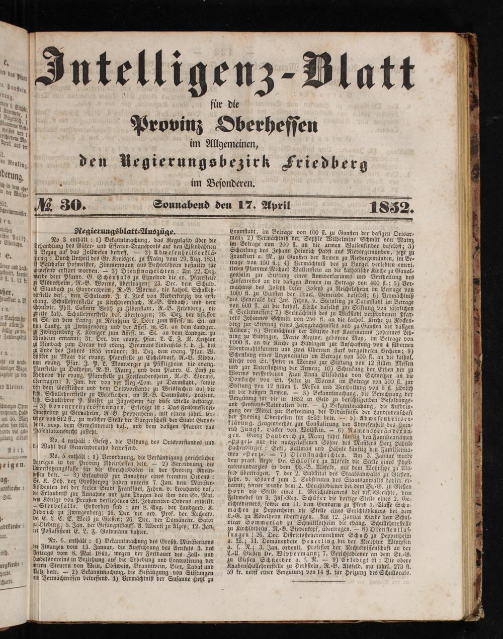 Intelligenzblatt für die Provinz Oberhessen. 1834-1834