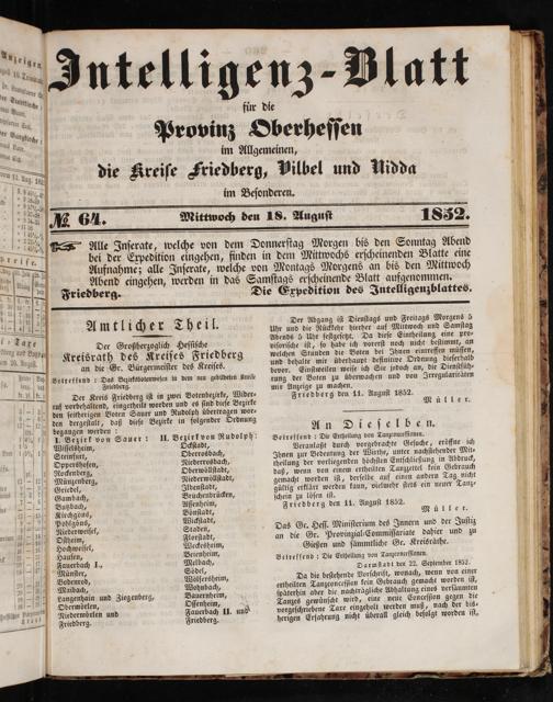 Intelligenzblatt für die Provinz Oberhessen. 1834-1834