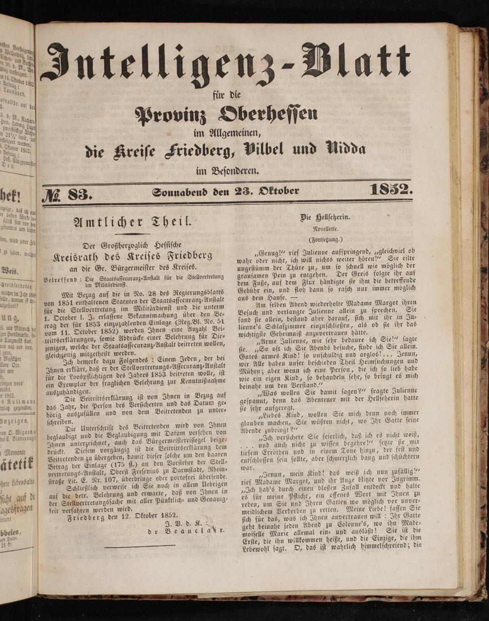 Intelligenzblatt für die Provinz Oberhessen. 1834-1834
