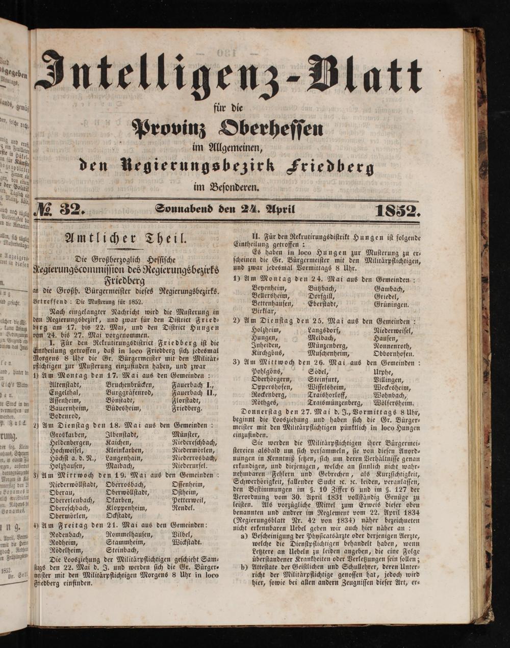 Intelligenzblatt für die Provinz Oberhessen. 1834-1834