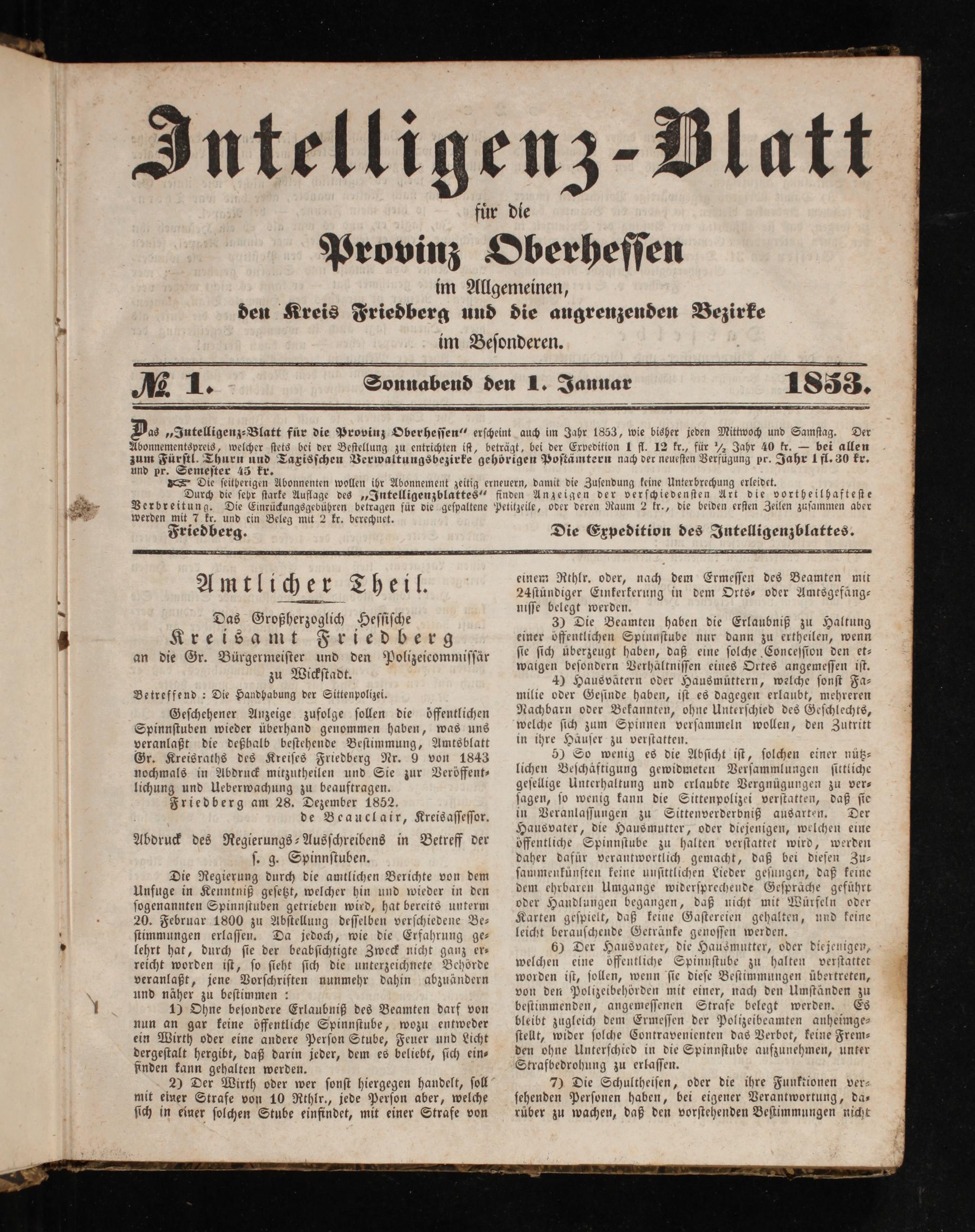 Intelligenzblatt für die Provinz Oberhessen. 1834-1834