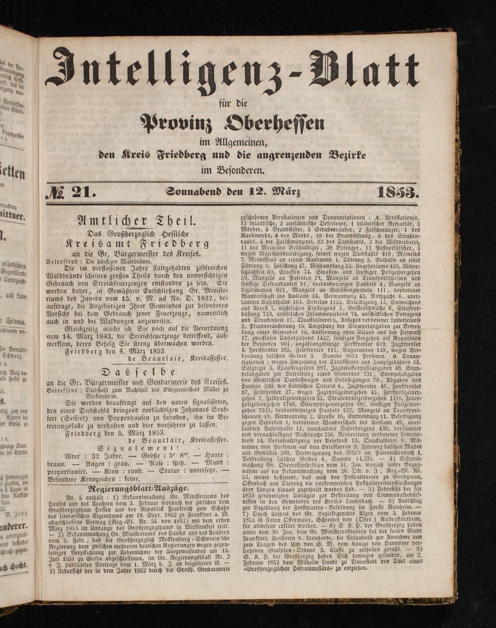 Intelligenzblatt für die Provinz Oberhessen. 1834-1834