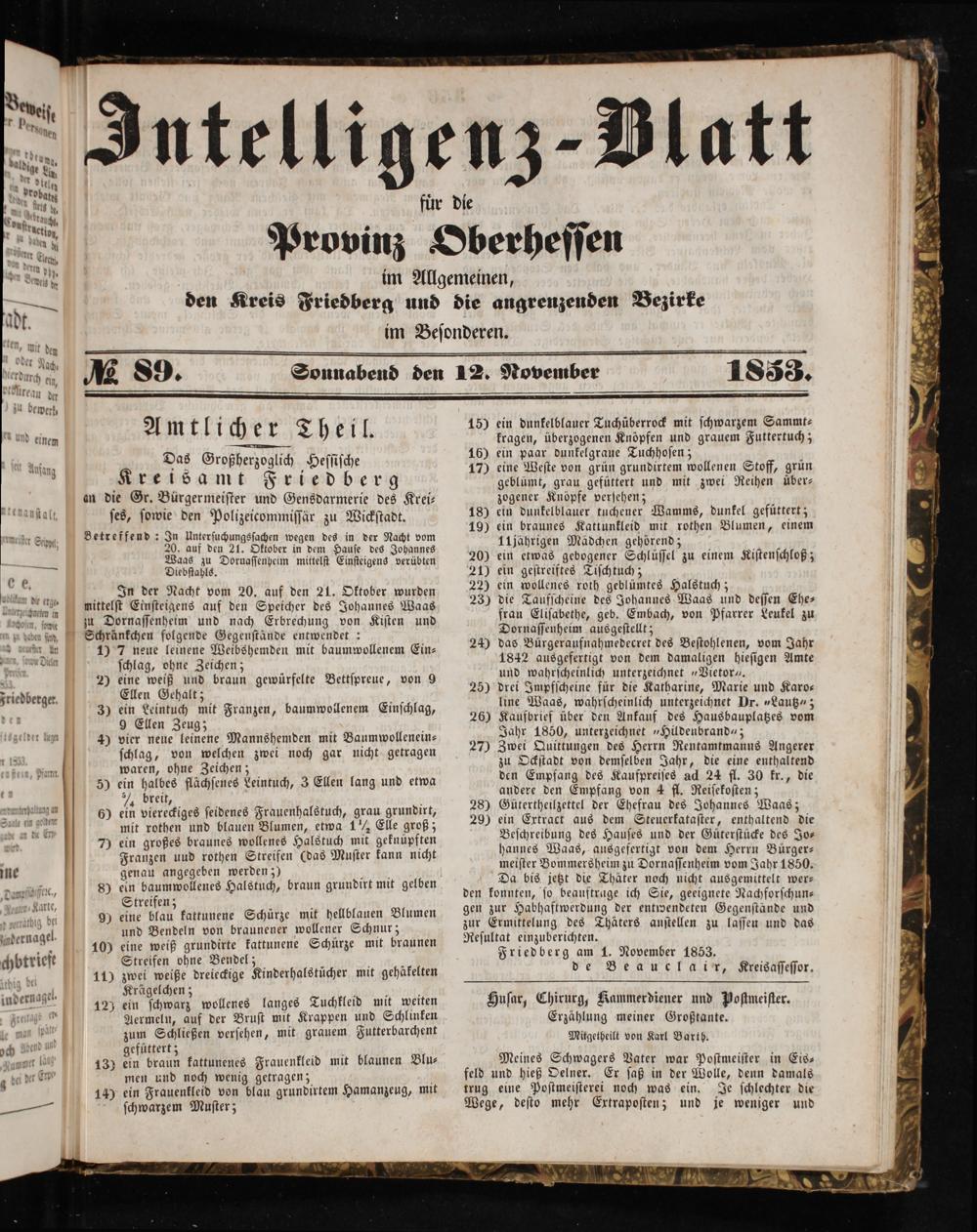 Intelligenzblatt für die Provinz Oberhessen. 1834-1834