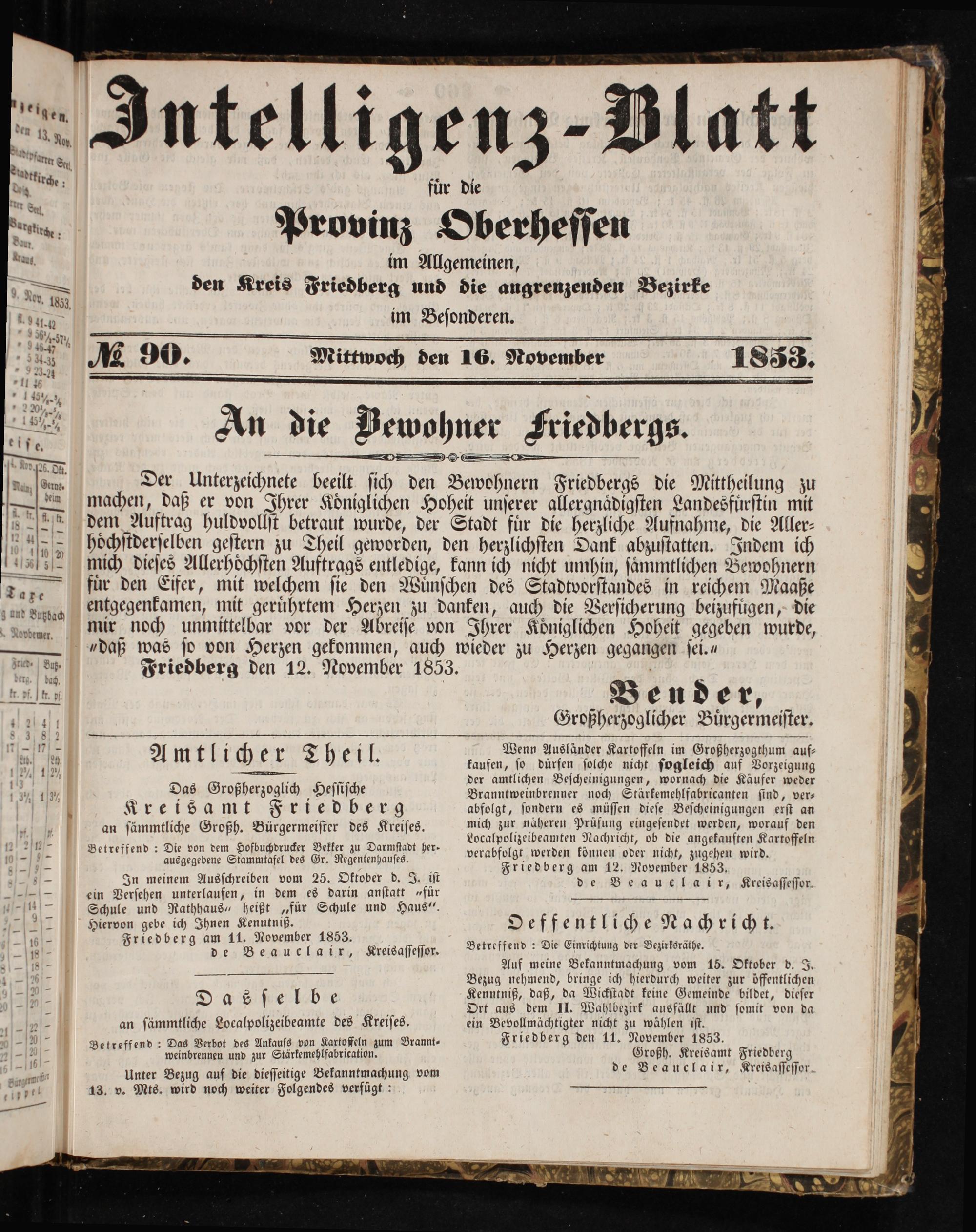 Intelligenzblatt für die Provinz Oberhessen. 1834-1834