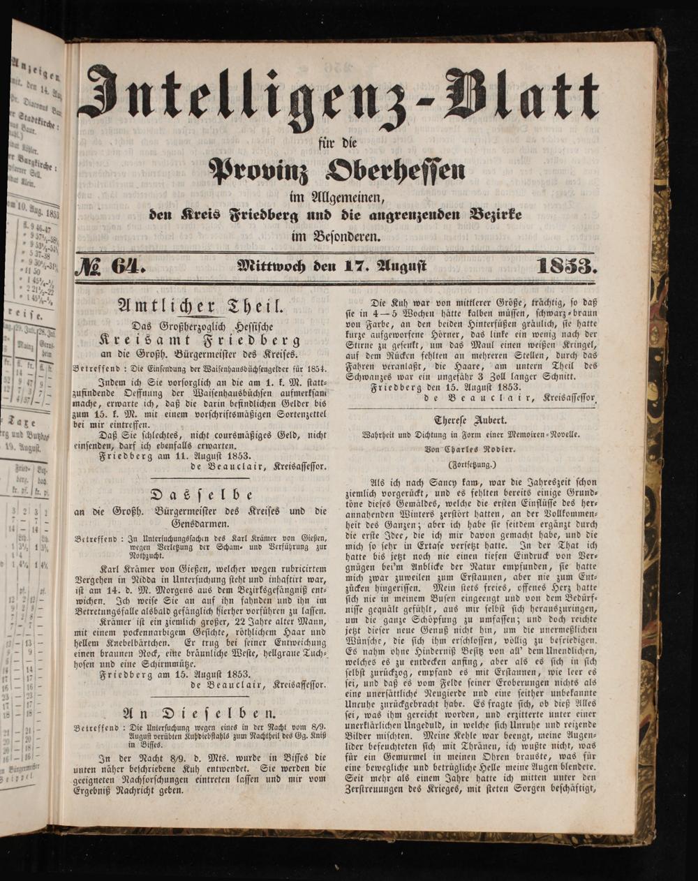 Intelligenzblatt für die Provinz Oberhessen. 1834-1834