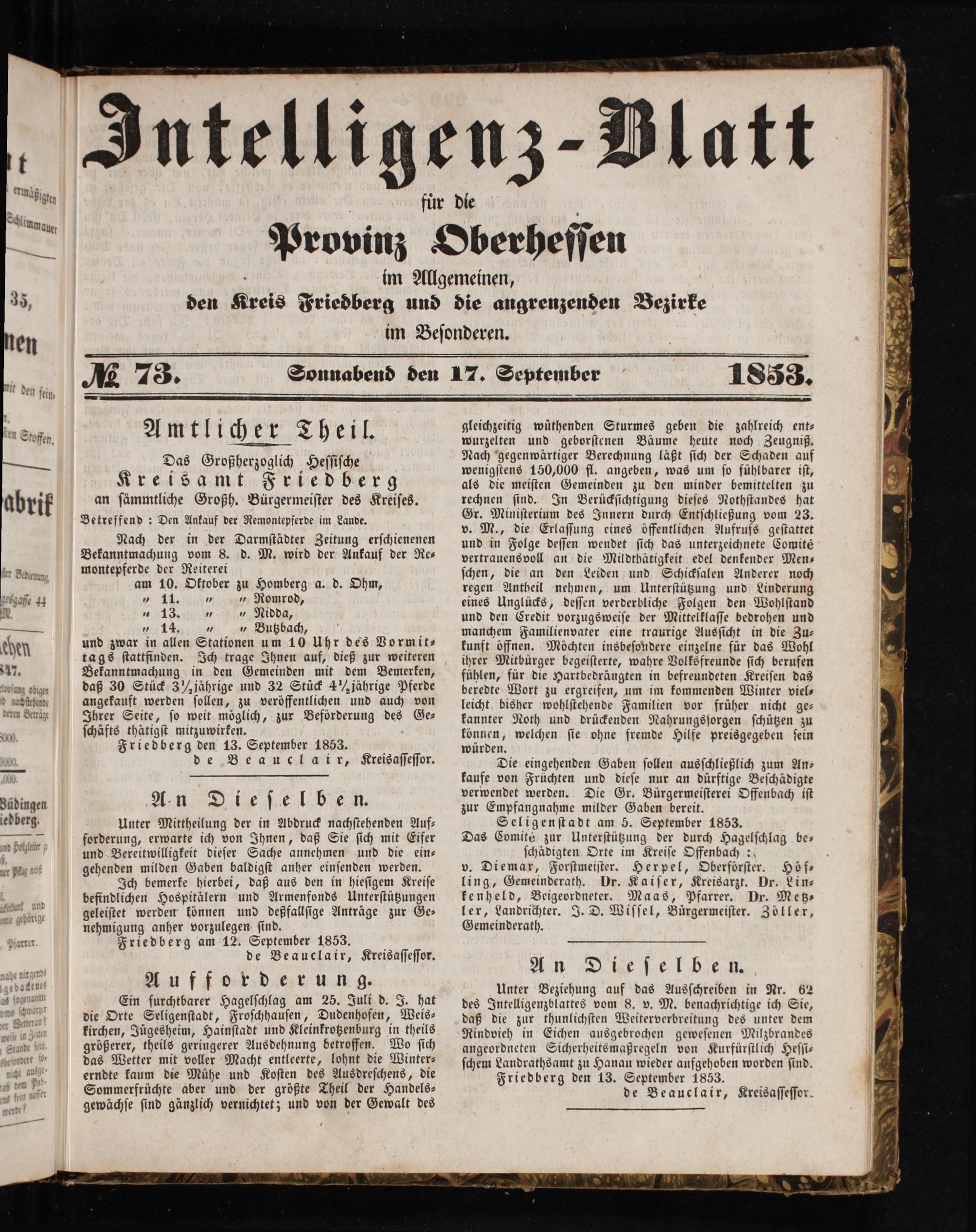 Intelligenzblatt für die Provinz Oberhessen. 1834-1834