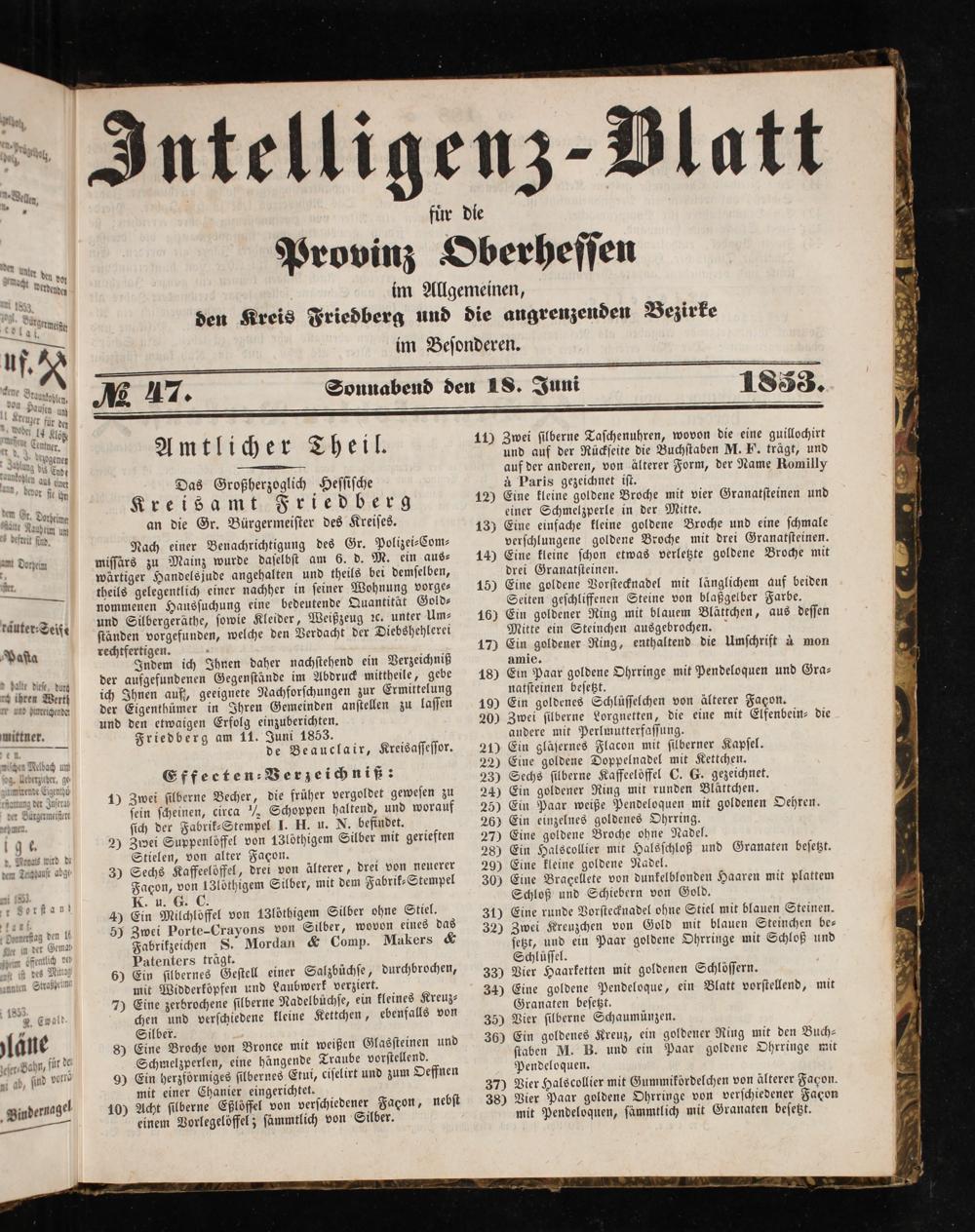 Intelligenzblatt für die Provinz Oberhessen. 1834-1834