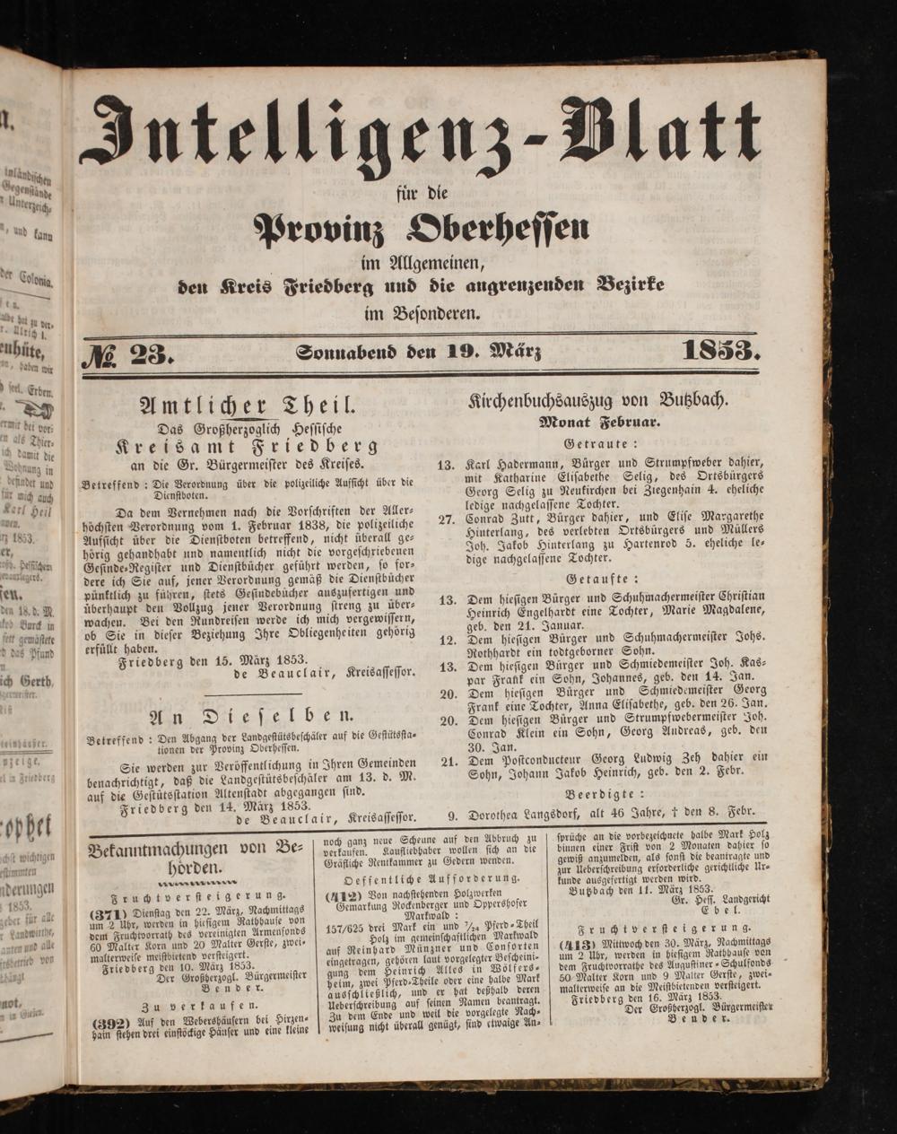 Intelligenzblatt für die Provinz Oberhessen. 1834-1834