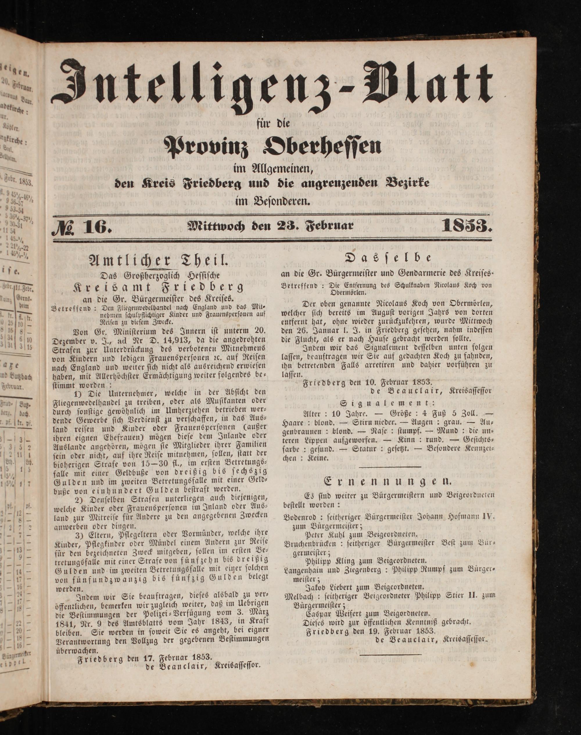 Intelligenzblatt für die Provinz Oberhessen. 1834-1834
