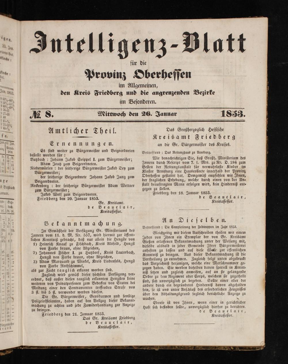 Intelligenzblatt für die Provinz Oberhessen. 1834-1834