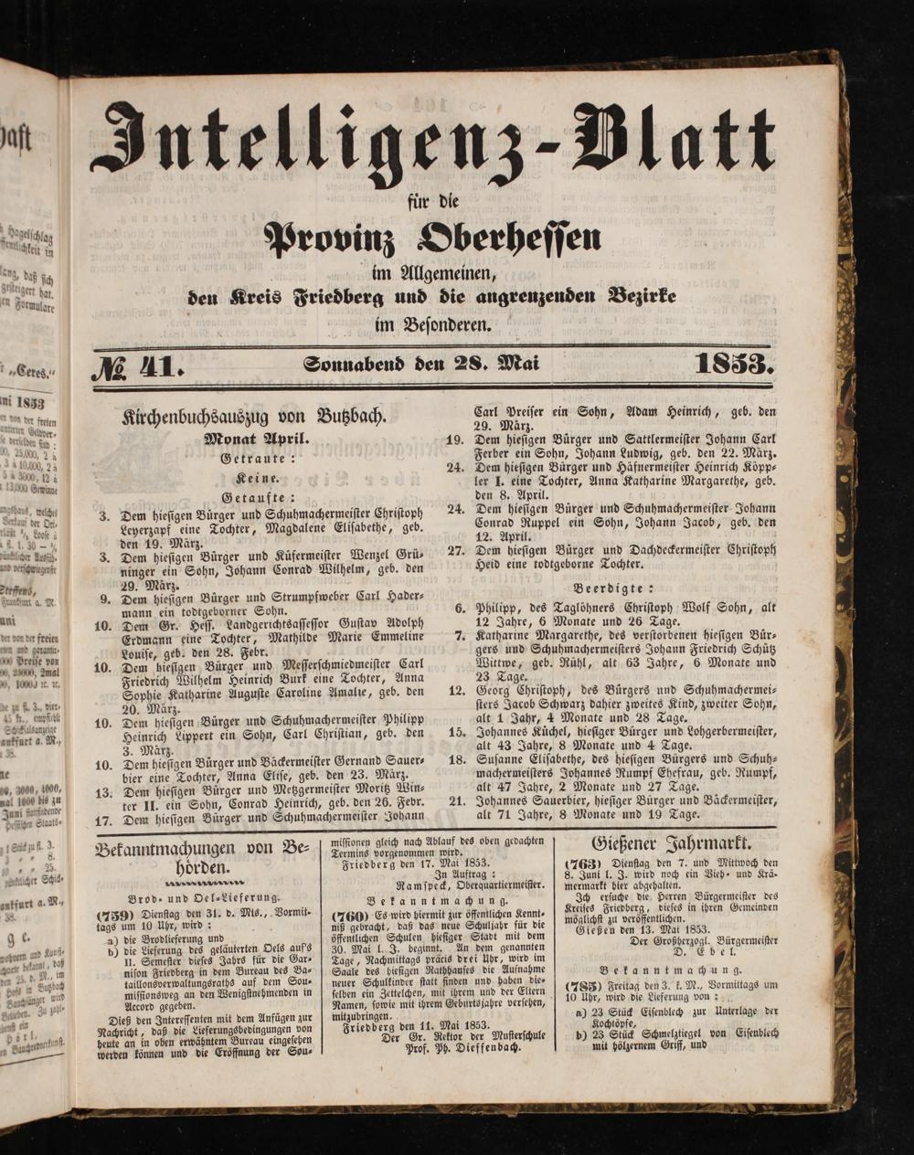 Intelligenzblatt für die Provinz Oberhessen. 1834-1834