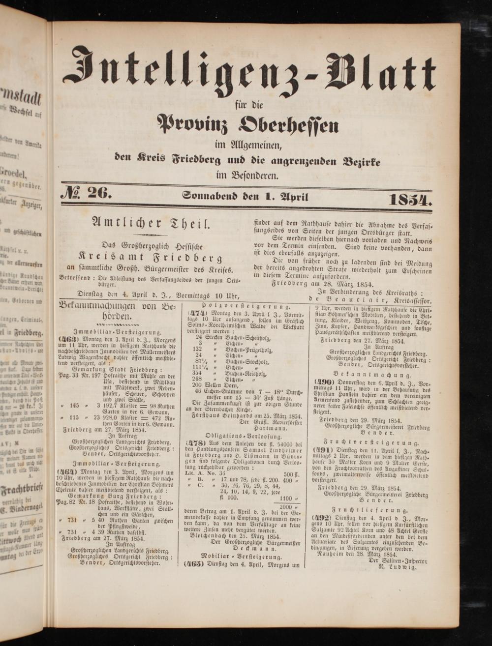 Intelligenzblatt für die Provinz Oberhessen. 1834-1834