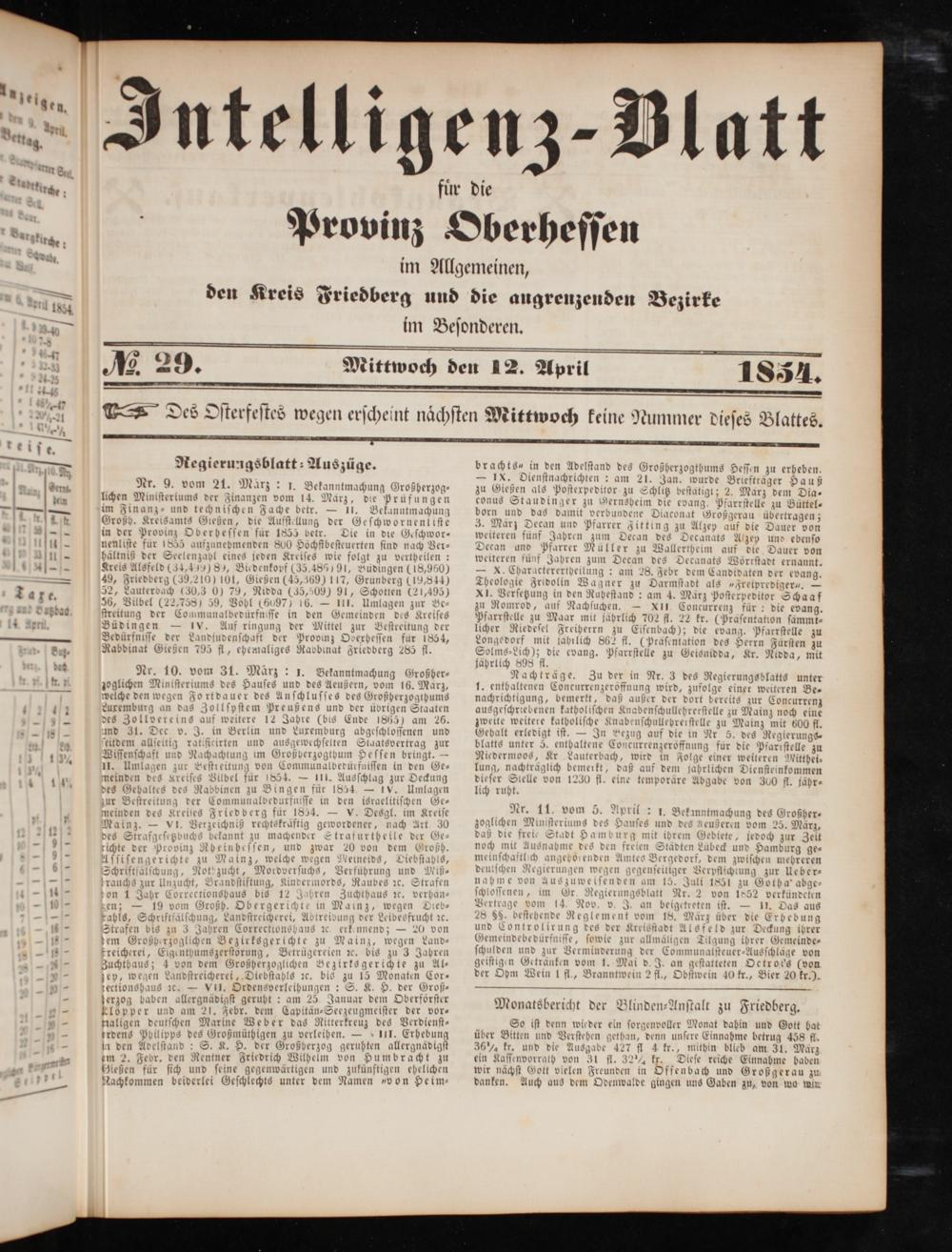Intelligenzblatt für die Provinz Oberhessen. 1834-1834