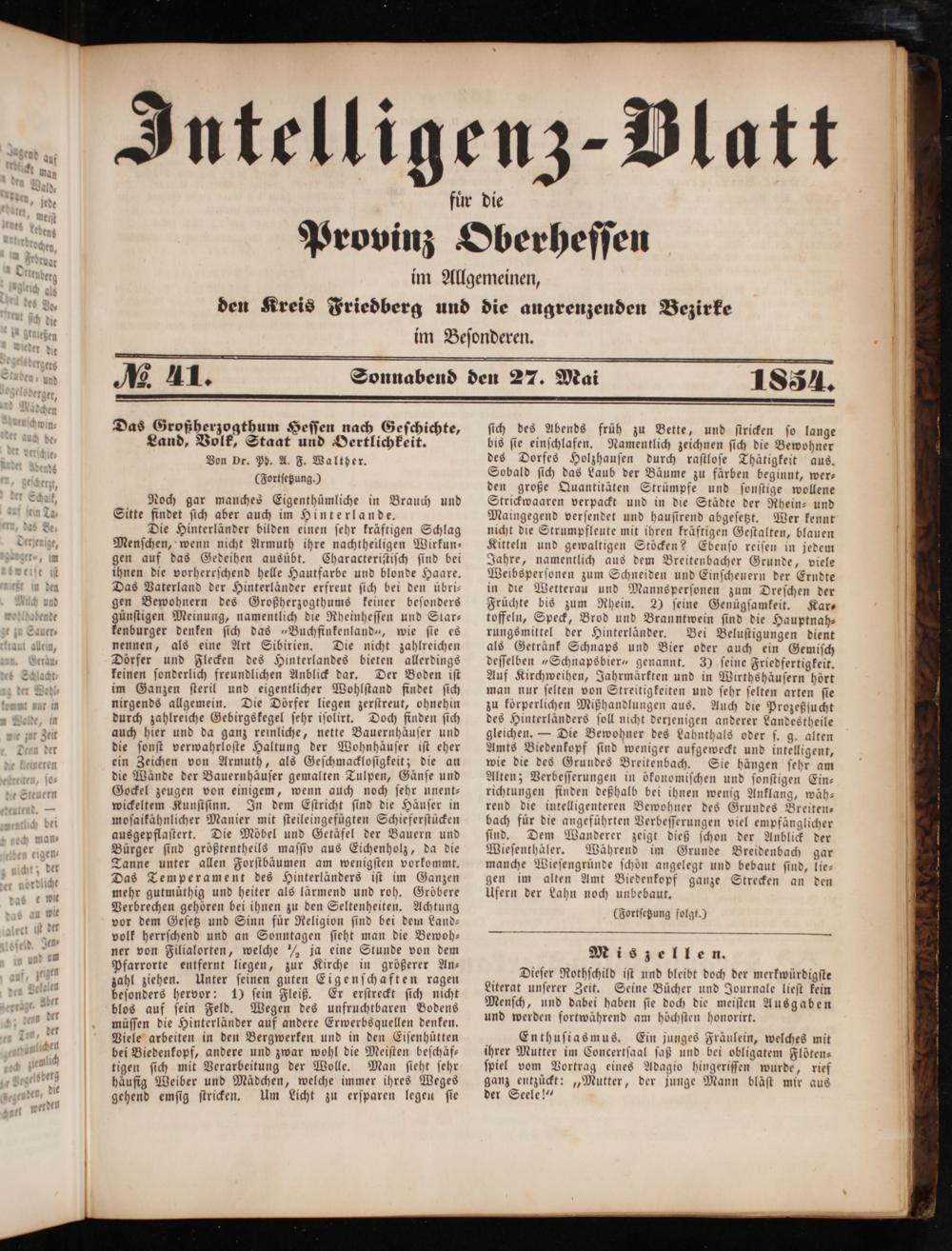 Intelligenzblatt für die Provinz Oberhessen. 1834-1834