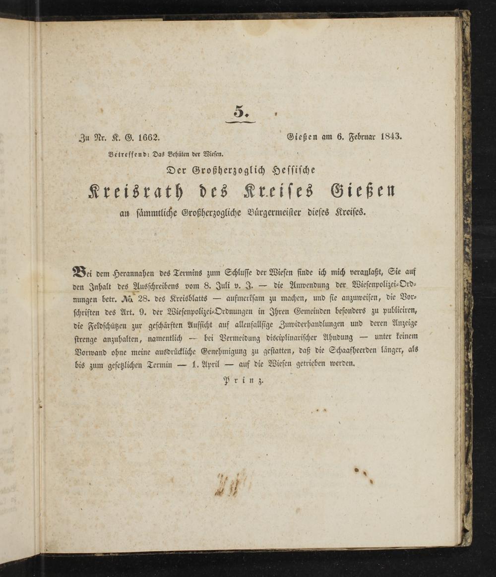 Amts-Blatt des Großherzoglich Hessischen Kreisraths des Kreises Gießen. 1843-1847