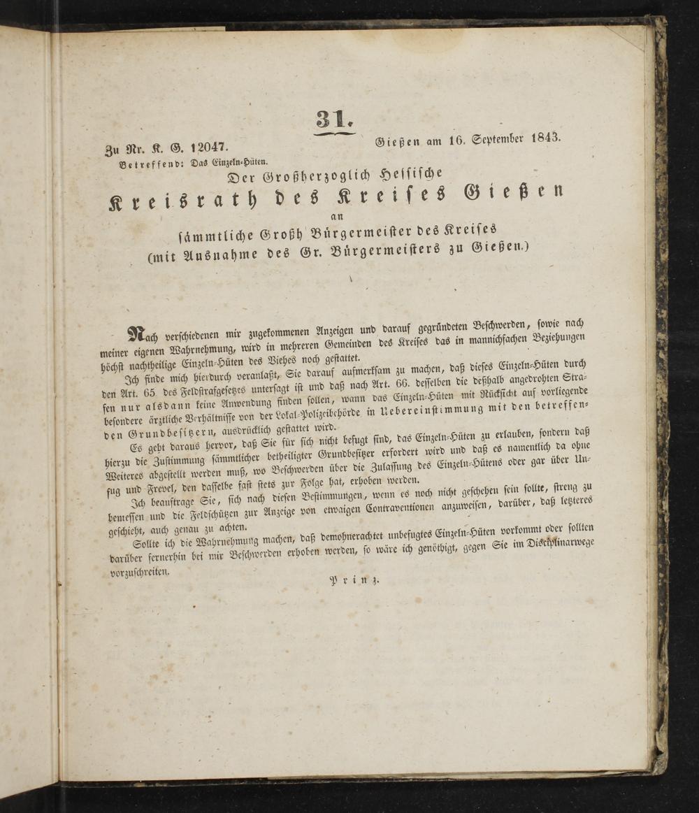 Amts-Blatt des Großherzoglich Hessischen Kreisraths des Kreises Gießen. 1843-1847